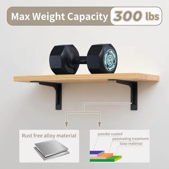 powder coating finished & Applic place Matte black coated finish, dur and sturdiness. bracket comes with traditional matte black, It fits in perfectly in your farmhouse kitchen, garage, basement storage room, and backyard.
