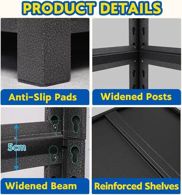 Boltless Assembly Quick & Easy SetupFeatu a snap-in design, this storage shelves can be assembled effortlessly without the need for screws or bolts. The package includes a detailed instruction manual and an installation video, making setup simple and convenient for anyone.