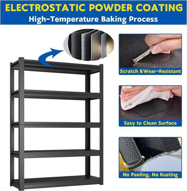 Rust-Resistant, Scratch-Proof & Built to LastCoated with a high-temperature electrostatic powder finish, the surface is highly resistant to rust, scratches, and ryday wear and tear. This protective layer enhances durability, ensu your garage storage shelves heavy duty remains in top condition n in hd or demanding environments.