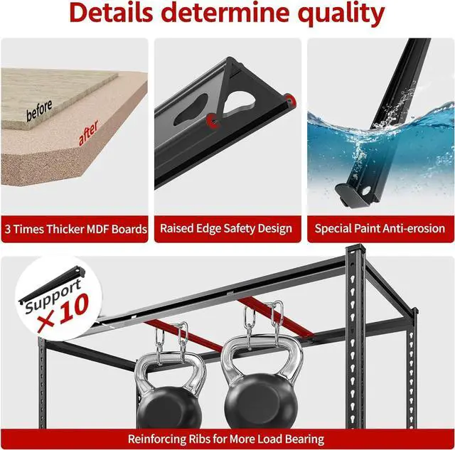 Rolled Edge Special Design - Garage Shelving Heavy DutyThere is no need to worry about the poor quality of single-layer column shelves, fragile, easy to scratch and other problems. upgraded garage shelving features a rolled edge design that not only makes the shelving unit columns thicker and better, but also protects your hands from scratches