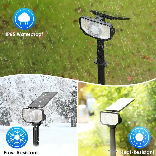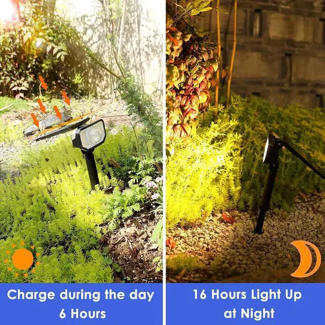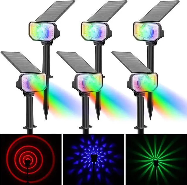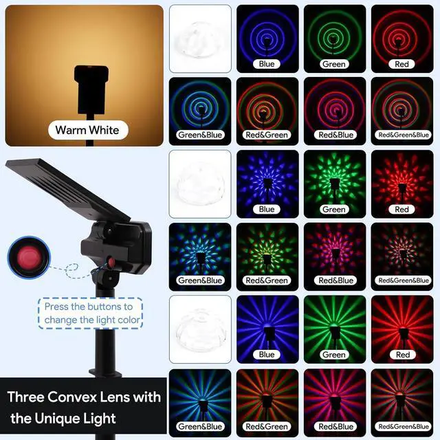 [IP65 Waterproof & Dur]- Multicolor Outdoor Lights with solor powder are waterproof, frostproof and weatherproof. Using the dur anti-UV ABS material, the solar landsacpe spotlights can work under -4~113. The IP65 waterproof rating allows the solar garden lights to withstand all kinds of bad weather such as rain, snow, wind frost, high temperature, etc.