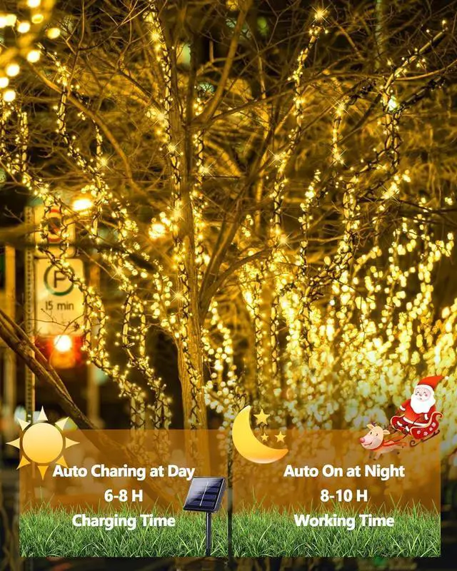 Widely Used Solar Christmas Lights for Outside: The soft bend LED solar light st is easy to wrap anywhere. It is a great decor outdoor for all festivals and seasons. With the cozy warm white light, the solar xmas lights are perfect for Christmas, Thanksgiving, Wedding, New Year, birthday pies and daily decorations. It can be widely used for patios, backyards, decks, porches, stairs, barbecues, umbrellas, fences, pergolas, bistros, restaurants, hotels, commercial buildings, shopping centers and more