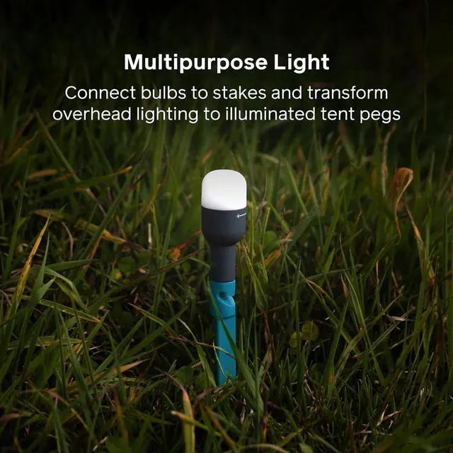 POWERFUL, PORT, AND ADVENTURE READY. Weighing only 1 oz each, the six ultralight weight mini lights provide up to 15 lumens each, enough light to illnate 1, 000 square feet. The light nodes are water resistant (IPX4), shatterproof, can operate in extreme temperatures, and last up to 20 hours. The included tent stakes are incredibly dur, ultra lightweight, and have a conveniently placed notch to make sure your guylines will nr slip.