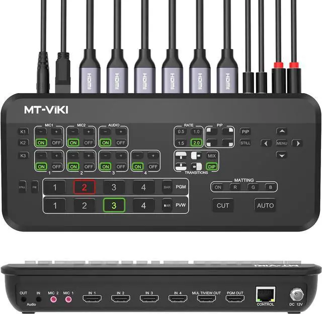 AUDIO MIXER: 2 x microphone audio input, 1 x 3.5 mm stereo analog audio input, 1 x 3.5 mm stereo analog audio output. features a full Fairlight audio mixer and all HDMI audio inputs and both microphone inputs are all connected separately to the audio mixer so you can live mix from all audio sources, giving more video audio editing solutions