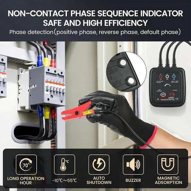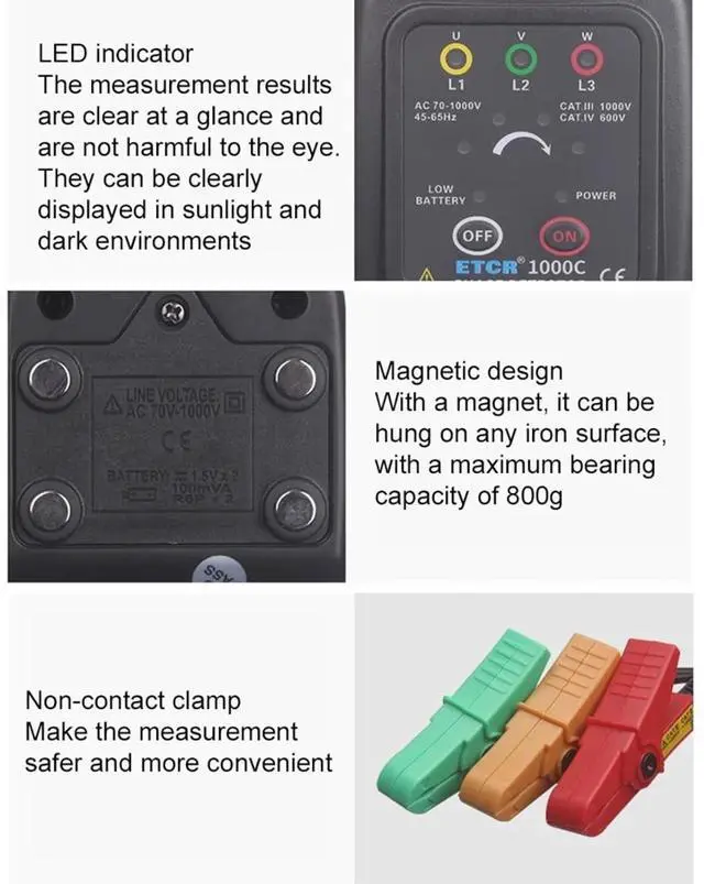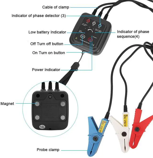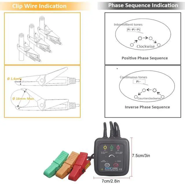 The dynamic sound and light indicates the positive or negative phase of the phase sequence of the three-phase power supply, which is clear at a.