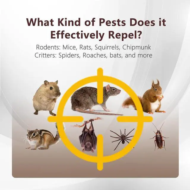 Effectively repels mice, rats, squirrels, bats, and other pests with a powerful wide coverage deterrent; The electronic mouse repellant rat control device affects within an indoor area of up to 1067 square feet; Since the ultrasound and pulse waves can not penetrate through walls and solid objects; Plugging one ultrasonic mouse repellent in one space enclosed is that we recommended
