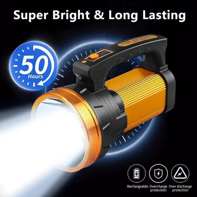 Drop Resistant Case: The led spotlight is made of ABS material. The sturdy housing provides 3 feet drop resistance for the port LED recharge spotlight. The recharge spotlight is a great choice for camping and fishing enthusiasts.
