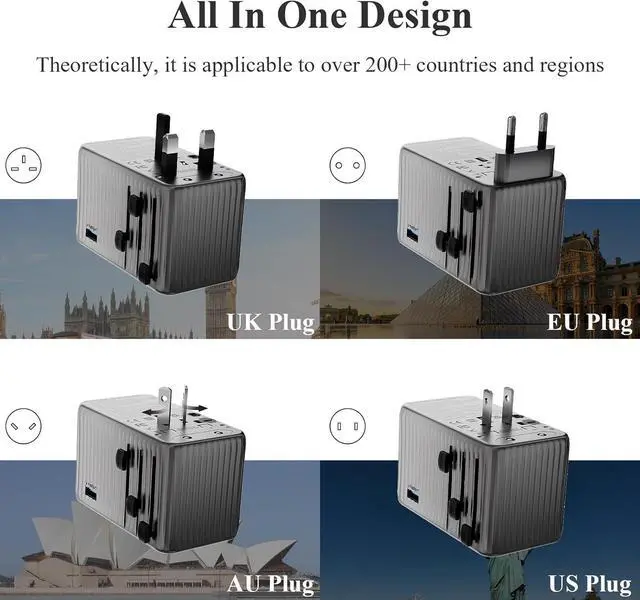 [Important Notes]: Please note that this adapter is not a voltage converter and will not convert voltage from 220V to 110V or vice versa. If you plan to use devices like hair dryers, straighteners, electric toothbrushes, or razors, they must support 100V to 250V dual voltage. Otherwise, you may need a power voltage converter.