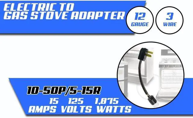Electrical Stove 10-50P 3-Pin Male 220/250V Plug To Gas Range 5-15R 110/125V 3-Prong Female Standard Wall Receptacle Socket Oven Outlet Adapter, Power Connector Cord Convert NEMA UL-FX125V1106-R