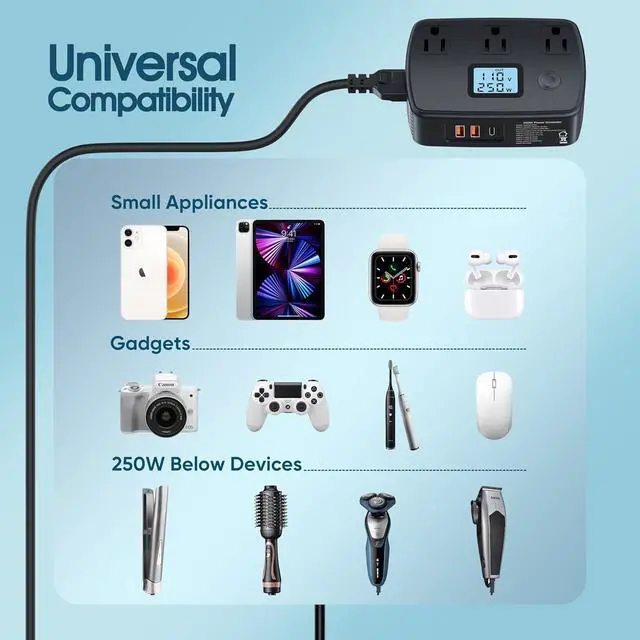 Safe and Protections: Our sine wave power converter supports st and sustain voltage conversion, comes with built-in cooling fan, to provide over-current, over-load, over-voltage, over heat, short circuit protection and surge protection