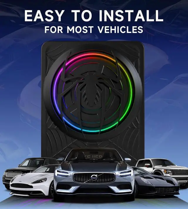 [Easy Set Up]--The Powered subwoofers dimensions are 13.58L * 10.23W * 2.76H inches which are super slim and can fit in the car under the seat or settle in a car trunk. The screws are also included in the package to better prnt bumps which can fit more types of vehicle such as SUV/Jeep/MVP/Truck/Pickup, etc