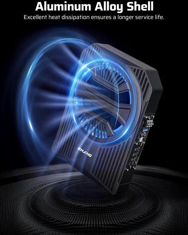 Advanced Thermal Design Aircraft-grade alnum housing provides 3x better heat dissipation than standard enclosures, maintaining optimal performance for under seat subwoofers with amp. Built-in safeguards include thermal protection and short-circuit prntion. Universal compatibility with all car stereos via high/low ll inputs.