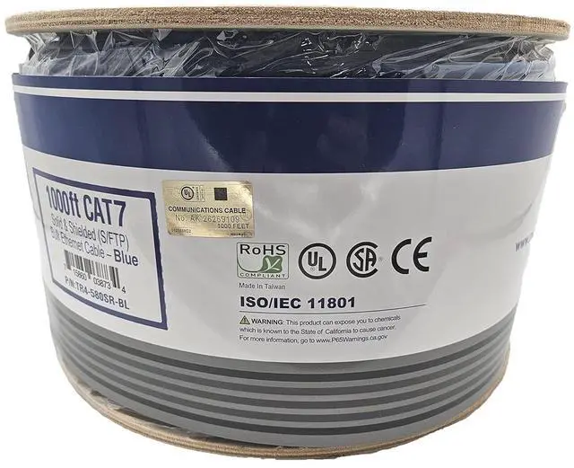 Bulk CAT7 Shielded C comes on a convenient wooden spool for easy access, providing you with 1000 feet of high quality, solid full copper wire with shielded and foiled twisted pair, ready for termination and routing. The braided shield with foiled twisted pair protects your data as it travels through the four twisted pairs of 23-gauge solid copper wires by wrapping it in a thin metal sle thus keeping electrical interference from things like fluorescent lights and electrical lines found in a drop ceiling or inside walls at a minimum.