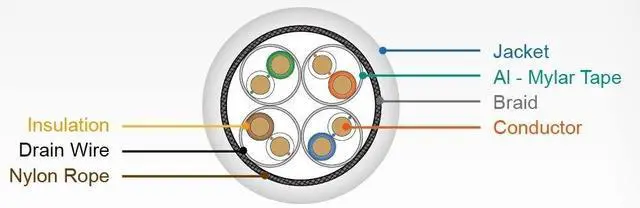 S/FTP (Braided Shielded & Foiled Twisted Pair) shielding to reduce crosstalk, EMI and electrical interference