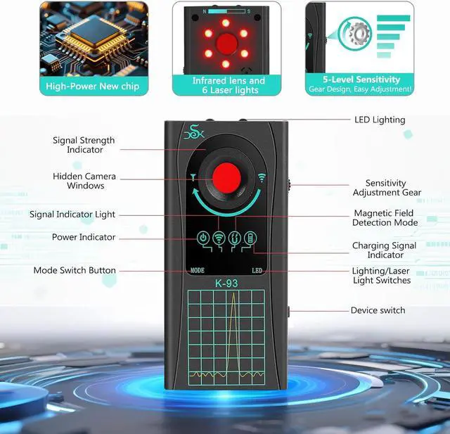 High Accuracy Detector: Pinpoint hidden cameras/bugs with precision. Higher sensitivity expands range (15m max). while filte phone/microwave interference. Ensu zero false alarms and exposing hidden cameras/bugs accuracy.