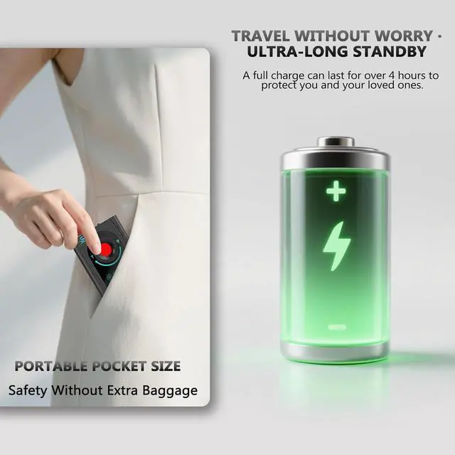 Ultra-Port Security: Lightweight and pocket-sized Anti-spy device. Recharge, 4+ Hour Standby & Discreet Anywhere Protection Fits Effortlessly in Pockets, Bags, or Purses for Travel, Work & Public Safety.