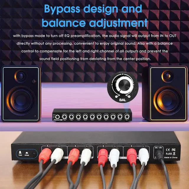 Tone Controls: Instant bypass for original signal and a balance knob to center vocals and imaging across left/right channels.