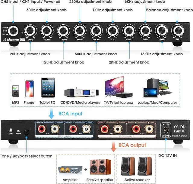 RCA In/Out: Connect multiple sources and amps at once for seamless switching and easy integration into existing home setups.