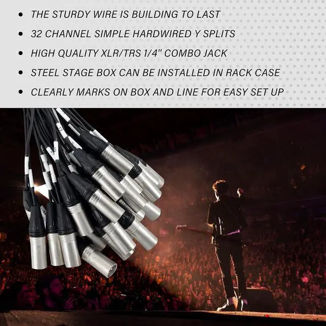 Dur materials: The material of the cord is rugged and dur, so you can take it anywhere without worrying that the cord will get frayed and affect its use. The Stage Box is made of heavy duty steel, dur and long-lasting for extended service life.