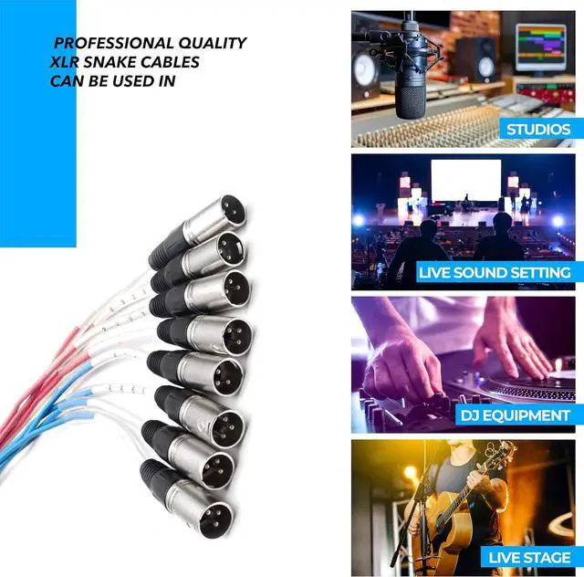 Channel Snakes: This package contains 8 channel 25 foot multi-patch XLR snake cs. The cs are made of 22 gauge copper wire, shielded and twisted with a foil and a drain wire. Each channel is clearly numbered.