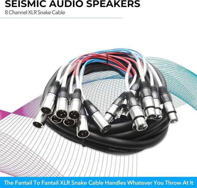 Whether you have a permanent installation or mobile, this fantail to fantail Seismic snake c is rugged enough to handle whatr you throw at it - road ready and built to last. These pro audio snake cs from can be used in the studio, on stage or any live sound setting. Each channel is clearly numbered for you to quickly identify. The XLR connectors make this XLR splitter c well-suited with professional power amps, mixing consoles, and many other pro audio and DJ equipment. Each XLR channel is also shielded with flexible rubber jackets. This package contains multi-patch 8 channel snakes, each measu 25 feet. The cs are made of 22 gauge copper wire, shielded and twisted with a foil and a drain wire. Each channel is clearly numbered. The XLR connection provides for a balanced line that lessens the possibility of hum & buzz & provides a noise-free signal. Speakers are designed to make music sound great & that is exactly what the 25 foot XLR c will do. 8 Channel XLR 25 Foot Snake C -