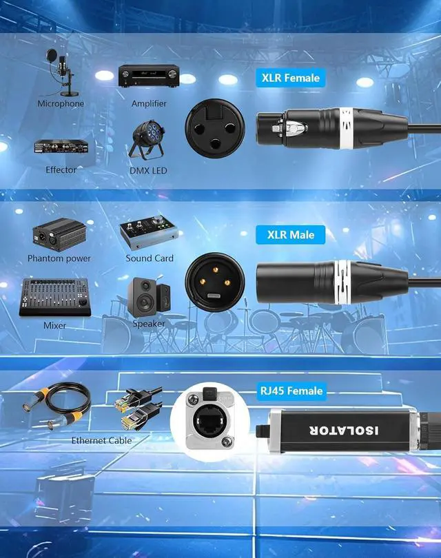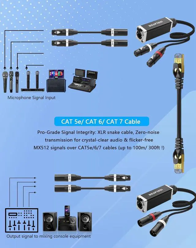 Universal Stage Compatibility: 2 Channel 3-pin multi network snake receiver connect mixers, mics, DMX lights (EtherCON/RJ45) to audio consoles, amps, or KTV systems