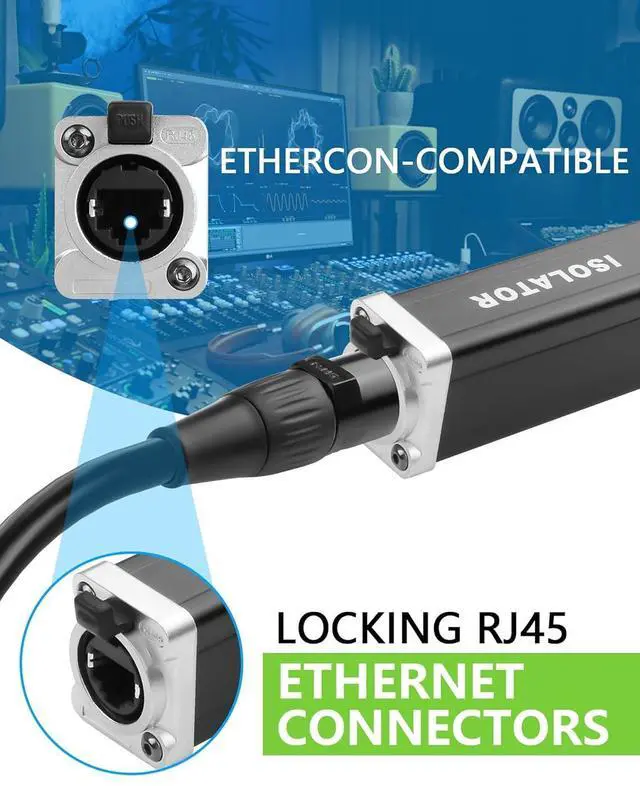 Rugged EtherCON Locking Ports: XLR snake c to ethercon c, secures cs du live concerts, bars, studios; no accidental disconnects
