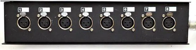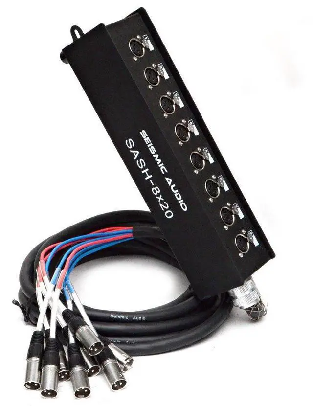 8 Channel Sub Snake - Model #: SASH-8x20, Straight 8 channel XLR Send Snake, Length: 20 Feet, Weight 6.4 lbs., Condition: NEW, Fantail and stage box are both clearly numerically labeled for quick and easy set up, 100% individually shielded pairs, 22 gauge heavy duty conductors, Heavy duty steel stage box with handle, High quality XLR connectors at both ends, Heavy duty strain relief at both ends, One Year Warranty Whether you have a permanent installation or mobile, this sub snake c is rugged enough to handle whatr you throw at it - road ready and built to last. The quality of your sound can only be as good as the connections between the stage and the mixer and with this snake c, each pair of heavy duty conductors is individually shielded, yielding crystal clear sound while rejecting extraneous noise. XLR connectors make this snake a great sub snake to run across stage and connect to the main snake. The brand was designed to make the professional musician, as well as the musician low on cash, sound great. With your purchase, you will receive one audio snake c pictured and described above. So, put it in your c today and get ready for years of trouble-free, crystal clear sound!