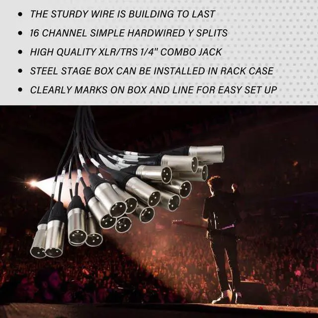Dur materials: The material of the cord is rugged and dur, so you can take it anywhere without worrying that the cord will get frayed and affect its use. The Stage Box is made of heavy duty steel, dur and long-lasting for extended service life.