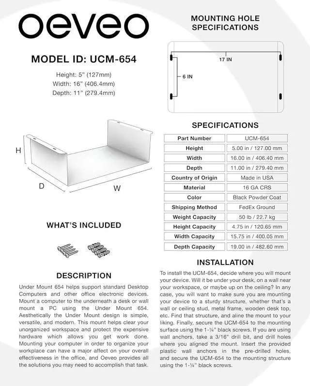 654. Designed to securely hold standard desktop computers, gaming consoles, and other electronic devices, this mount frees up valu desk space while protecting your equipment from dust and accidental damage.