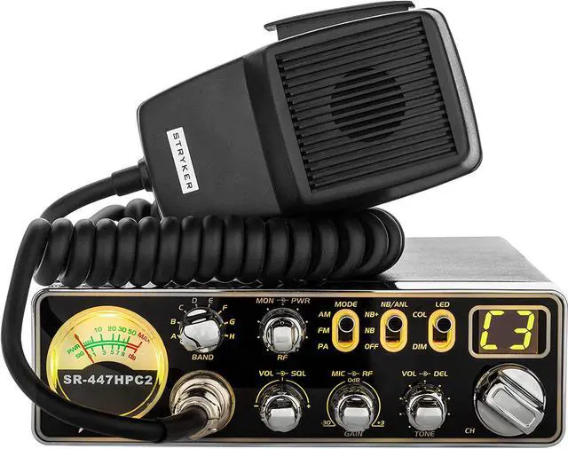The SR-447HPC2 uses negative peak compression; it helps produce rich, clear modulation. Rich HiFi modulation adds depth to your message, enhancing your voice and keeping it loud. It means when youre talking one mile or 10 miles, the 447HPc2 transmits amazingly smooth and loud. SR-447HPC2 is a compact small-size radio. Its compressed size makes mounting easier447HPC2 is designed to fit in the overhead cubby without sacrificing power, performance, and durability. If you buy or own a newer truck, mounting a 447hpc2 wont be a problem in the overhead console. SR-447HPC2 has a built-in SWR. It will alert you with a beep and at the same time prnt 447hpc2 from transmittingwhen SWR is high. When you transmit its shows SWR on the channel display. It means your radio is safe from High SWR damage.