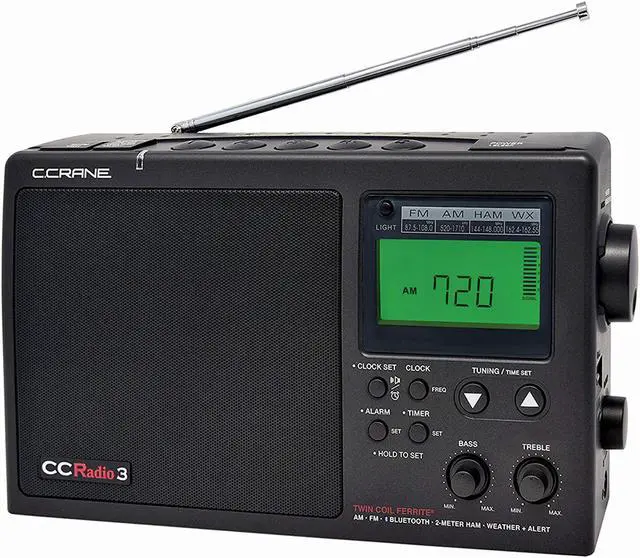 FEATURES: Clock, alarm, sleep timer, headphone jack, adjust display light and 5 one touch memory presets per band. Comes with AC power cord, runs on 4 D size batteries (not included). Extra Long Battery Life of approximately 250 hours while played at a moderate volume. Comes with 1 Year Limited Warranty and C. Crane US based tech support.