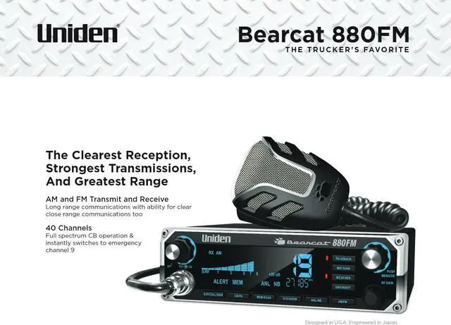 Drive with confidence and stay connected with the Bearcat 880FM CB radio, Powerful rugged design with advanced features and settings to suit any CB user.