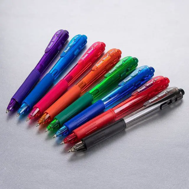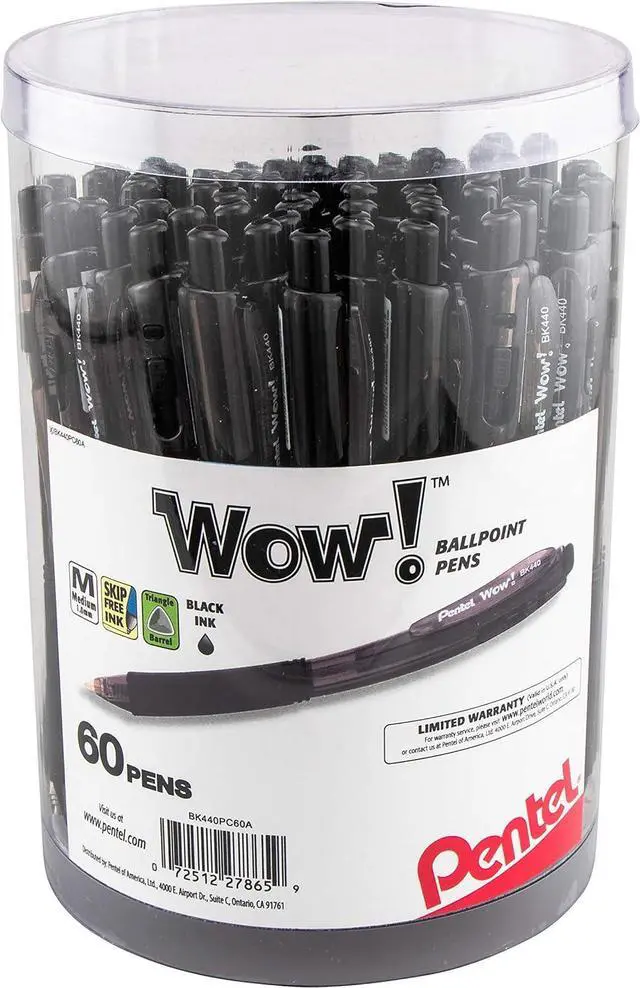 The ® Wow! retract ballpoint pen offers a distinctive design that stands out in a crowd. The unique triangular-shaped barrel comes in variety of stylish, transparent colors to match your own personal taste. The latex-free grip is also triangular, which makes it easy to hold and keeps the pen from rolling off your desk. To advance the tip, simply click the top; click the side button to retract. 1.0 mm metal tip writes medium lines. The ink colors match the barrel colors for easy color selection. All Wow! pens are covered by s exclusive limited lifetime warranty.