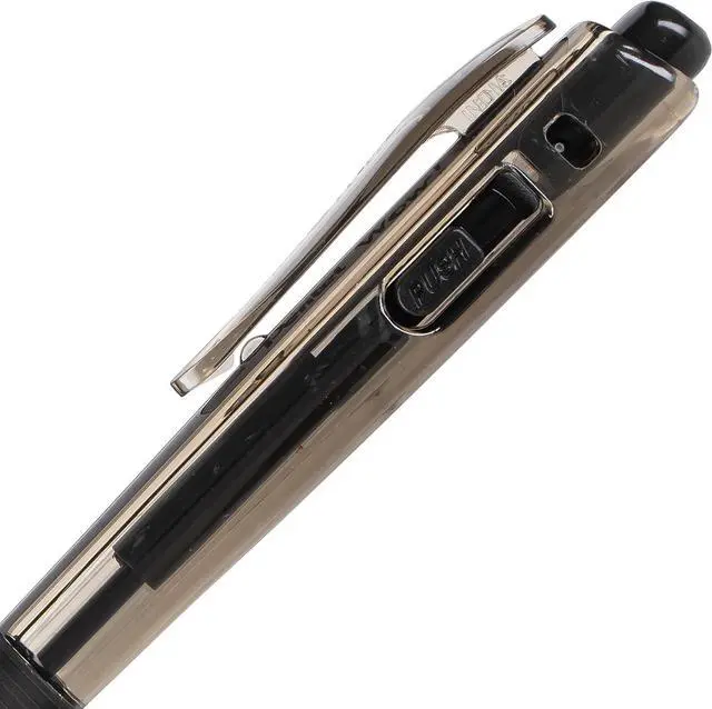 Click top to advance tip; click side button to retract
