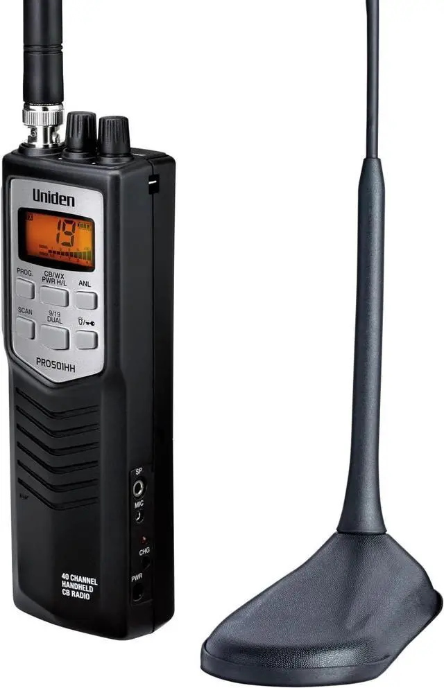 The PRO501TK can be used with the included flexible rubber antenna and recharge or Alkaline batteries for port use. Remember, is the name in CB radios.