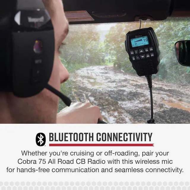 Join the Nation with the 75 All Road CB Radio Wireless Mic, your go-to communication tool for ry road trip, off-road adventure, or overlanding excursion. This innovative CB radio handset offers the latest in wireless communication with Bluetooth connectivity, allowing you to stay hands-free and focused on the trail ahead. The dual-mode AM/FM functionality gives you greater flexibility for communicating over longer distances or tuning into local radio stations, while digital noise cancellation keeps your conversations clear n in the noisiest environments. Designed for the rugged outdoors, this handset is rated IP66 waterproof, meaning it's built to endure the harshest conditionsfrom rain and dust to rugged terrain. The transceiver can be mounted anywhere in your vehicle, and the wireless handset, powered by USB, can be stowed easily when not in use, making it the ultimate space-saving solution for your communication needs. Compatible with the 75 All Road CB Radio, it's the only CB radio setup youll need for all your off-road adventures. Upgrade your vehicle's communication system today and experience the power of.