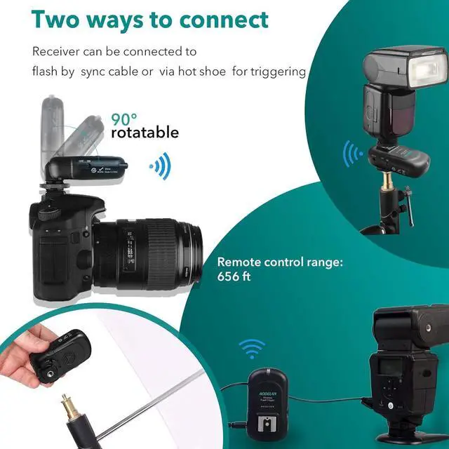 Wired and Wireless Remote Shutter- Wired and wireless shutter release functions. An included 3.5 to 3.5 mm sync c connects the trigger to a studio flash. A 3.5 mm to PC plug adapter is also included for flashes with a 1/4" mono plug socket.