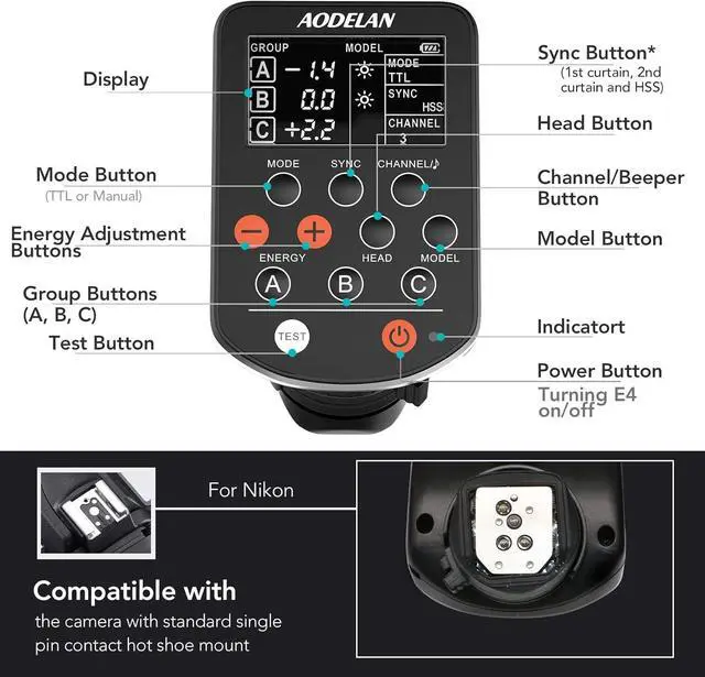 Compatible with P-rofoto A1, A1X, B2, B10, B1X, D1, D2, Pro-10, wirelessly trigger and manually control P-rofoto lights which has built-in Air system, including flash power control and modeling ligth control. Support TTL or HSS.