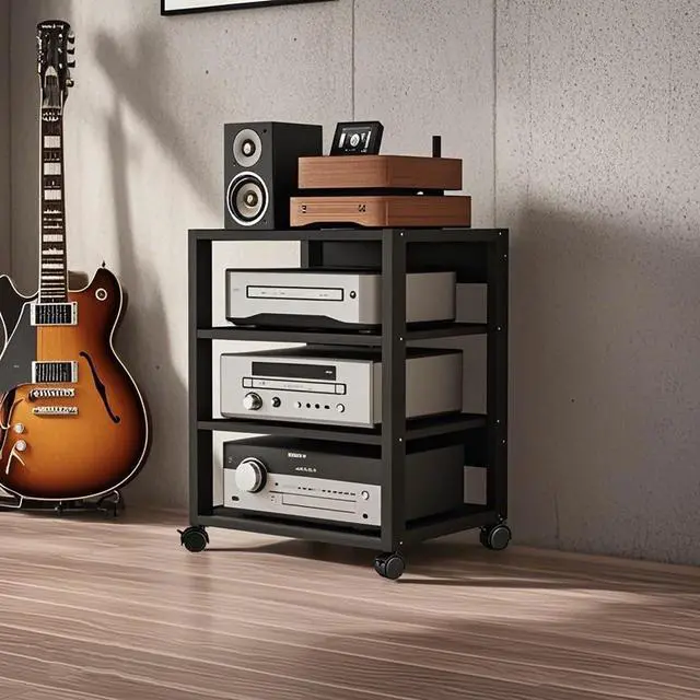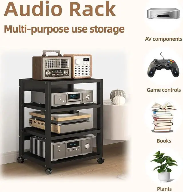 Multi-Functional Storage: The av media stand cabinet can hold amplifiers, speakers, mixers, karaoke machines, printers, books, stationery and potted plants; Perfect as a stereo shelf in your home theater, office, stores, or bedroom, or as a versatile audio component rack for any space.
