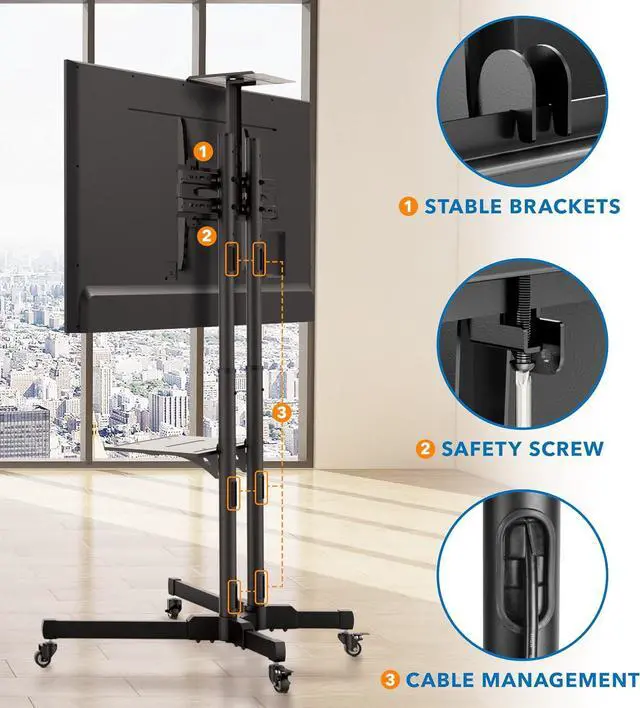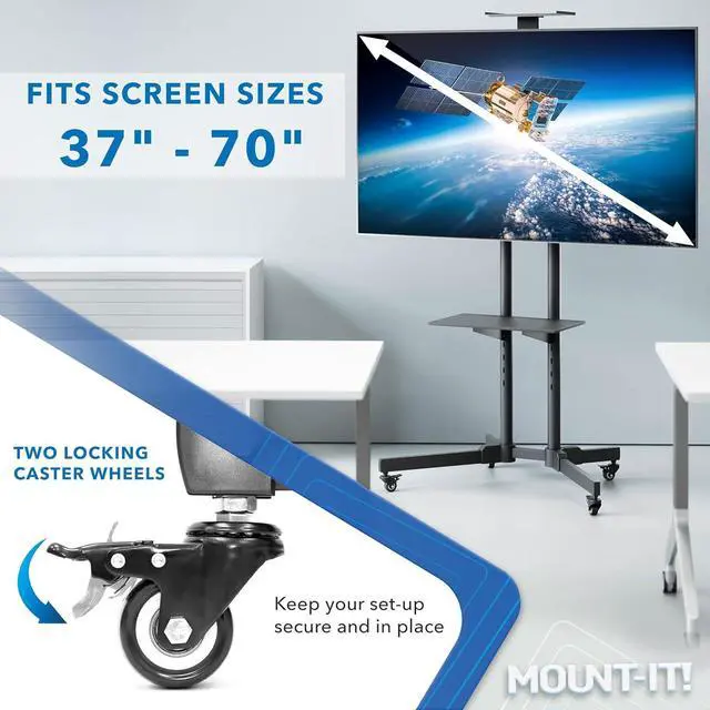 ROLLS SMOOTHLY WITH LOCKING CASTERS FOR STABILITY ON DEMAND - Designed for mobility without compromise, this c features four smooth-gliding caster wheels that allow you to easily roll your display from room to room, over hardwood, tile, or carpet. Two of the wheels lock firmly into place, offe stability when its time to watch, present, or interact. Its the perfect rolling TV solution for shared office spaces, training centers, pop-up nts, or multi-purpose living areas.