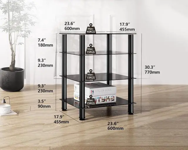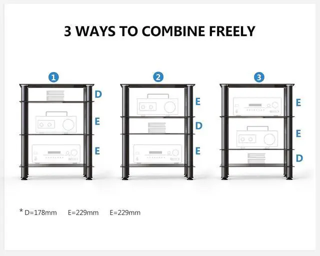 AESTHETIC DESIGN: This av stand are designed in a modern minimalist style with smooth lines. As a result, the equal spacing between the tiers of the stereo cabinet organizes items while ensu a good visual effect