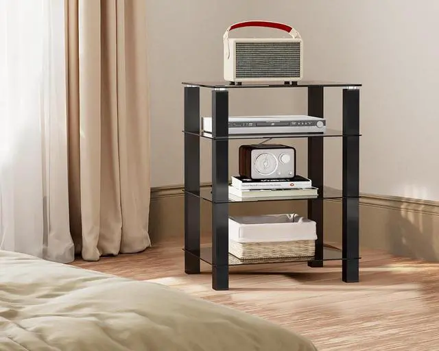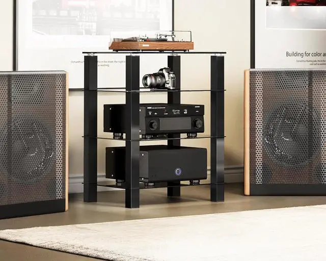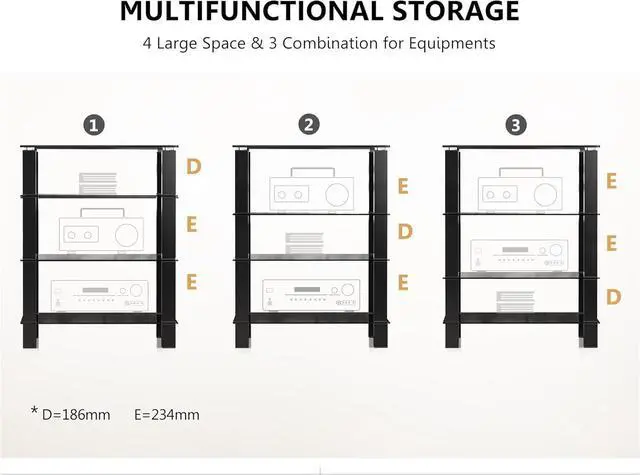 AESTHETIC DESIGN: This av stand are designed in a modern minimalist style with smooth lines. As a result, the equal spacing between the tiers of the stereo cabinet organizes items while ensu a good visual effect
