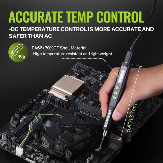 Precision Enginee Meets Unmatched Portability: From cold to perfect solde temperature in just 6 seconds. Experience accurate temperature control, safer for sensitive electronics than traditional AC irons.