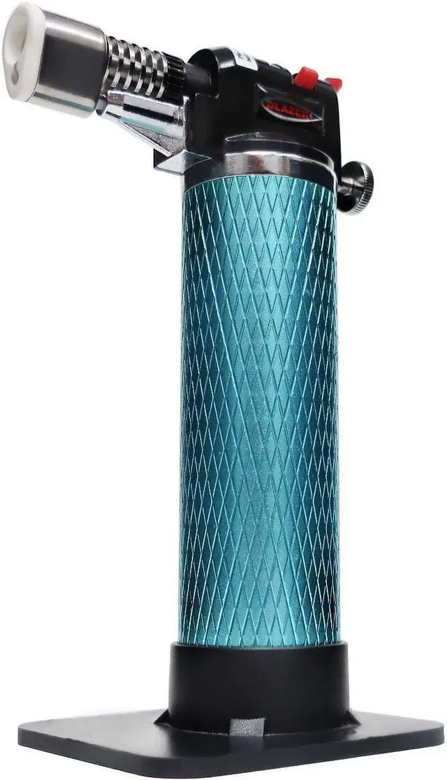 The Stingray butane torch is an anodized, refill gas torch that creates a precise flame emitting from a nozzle head, allowing direct heat application to an object. It is used for detailed purposes such as brazing, plumbing, solde, jewelry making, culinary, and dental and lab applications.