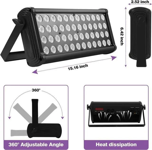 Safe Light: This dj light bar is suit for indoor performances, outdoor lighting, etc., long life span. Besides, it has 25 times/sec high-speed strobe effect and pulse strobe effect as well as efficient and noiseless alnum heat dissipation system.