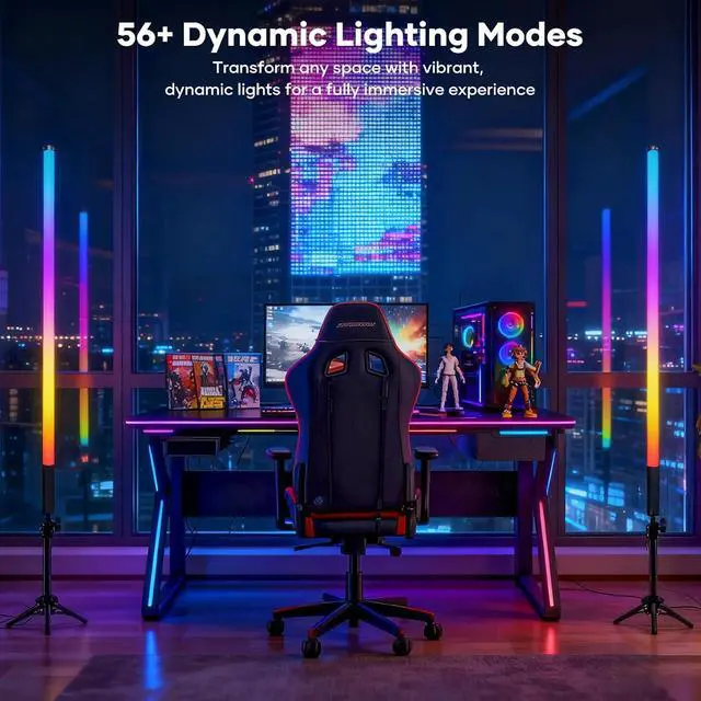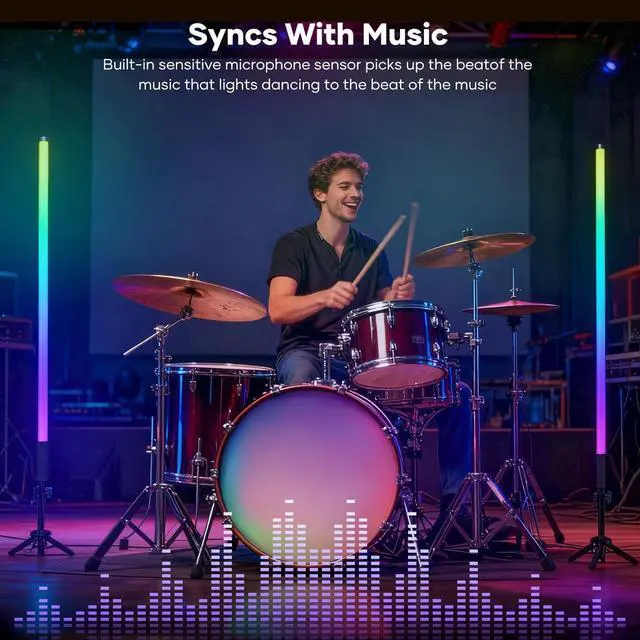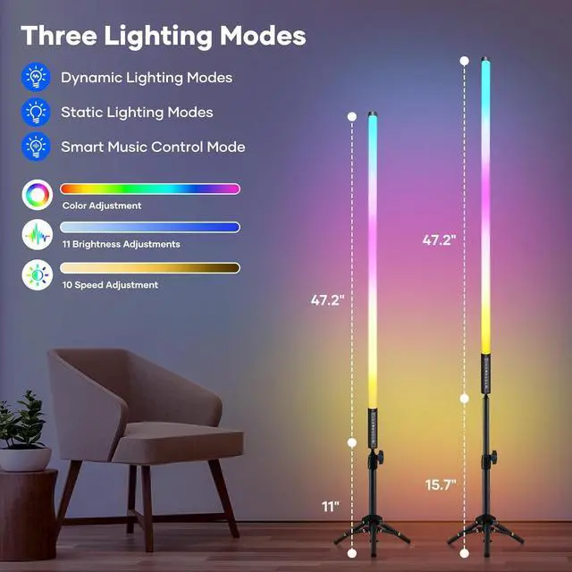 Multi scenario application 120cm/4ft light tube length and adjust base height. It is the perfect choice for creating a romantic atmosphere, ideal for esports game rooms, py decorations, festive celebrations (Christmas and birthdays etc), DJ py stages, photo studio fill lighting, etc. It is widely used in DJ lighting, weddings, py, dance clubs, studios, stage lighting, game rooms, bars and other scenes. Additionally, it serves as a perfect decoration for computer desks, bookshelves, bede areas, TV backdrops, and more