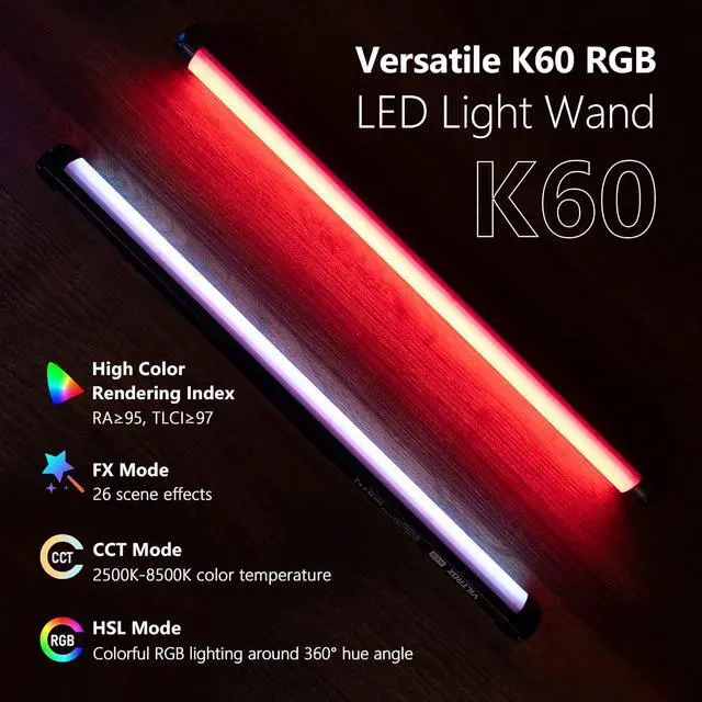 ligent App ControlDownload the WeeylitePro app on your iOS or Android mobile device, then use it to wirelessly control the K60 RGB video light stick, and switch various scene modes with easy operation. Also, it supports remote control and light body control, n combined with other Weeylite lights to get your ideal color and special effects.