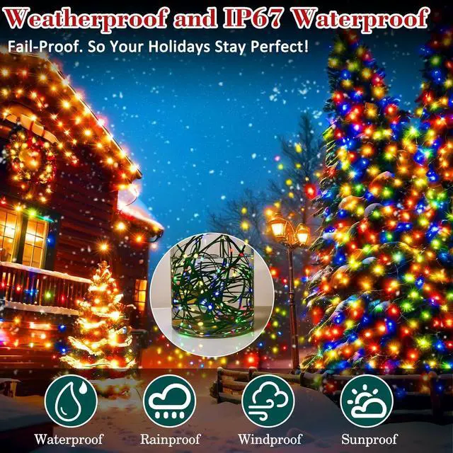 TANGLE-FREE DESIGN & SAFE TO USELong christmas lights feature embedded bulbs for a sleek cord, eliminating tangles common with traditional lights; perfect for easy storage and setup. These outdoor Christmas string lights rations have a safe 30V low voltage UL certicated plug, and remain cool to touch even after a long time of use, safe for a family with kids or pets!