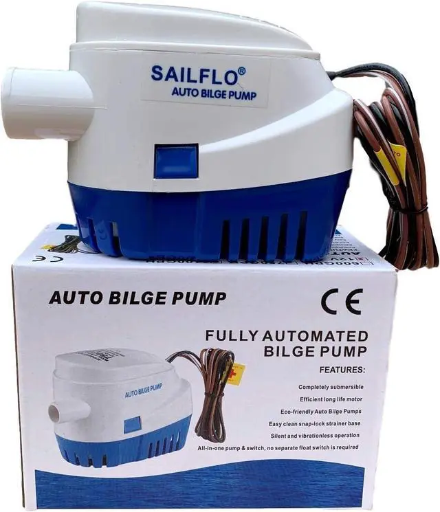 Current (A): 3.8A; All-in-one pump & switch No float switch required Pump turns on when water level rises & shuts off when water is removed Compact, efcient, long life motor Extremely efcient, very low current Anti-airlock protection will not burn out when run dry Can be used with switch panel for manual override High-impact durable plastic housing Integrated float switch TEST button at rear of unit Equipped with built in electronic controlled reed sensor for easy fully automatic operation Water/moisture tight seals, Stainless steel shaft Silent and vibration free operation Ignition protection to protect the pump against high current Quick release strainer for easy maintenance Equipped with built in electronic controlled reed sensor for easy fully automatic operation Includes comprehensive user manual with installation instructions and wiring diagram A great choice for- shing boats, Ski boats, Sailboats, Personal watercrafts (PWCs), Yachts, Dinghies, Cabin cruisers, Center Consoles, Cuddy cabins, Deck boats, Inflatables, Pontoon Boats, Trawlers, Jet boats